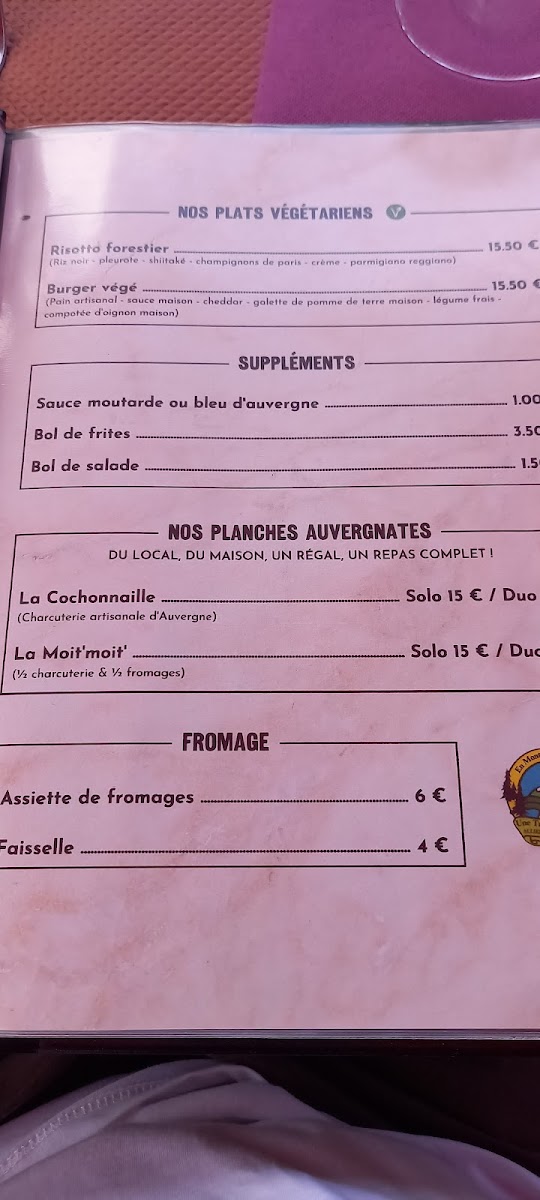For main courses, L'auberge Des Bois Noirs presents hearty and satisfying options. The Faux Filet Sauce Au Bleu is a tender steak served with a creamy blue cheese sauce, delivering a rich and savory experience. Those craving a taste of local flavors should try the Burger de Lavoine, a unique twist on a classic, or the Riz Vénéré Aux Champignons Et Parmesan, which combines earthy mushrooms with fragrant black rice and parmesan. For something truly special, the Feuillette Escargot offers a flaky pastry filled with tender escargot, showcasing the restaurant's attention to detail.